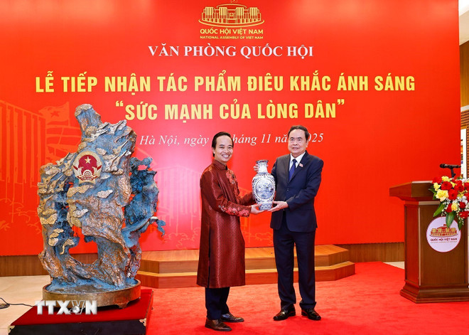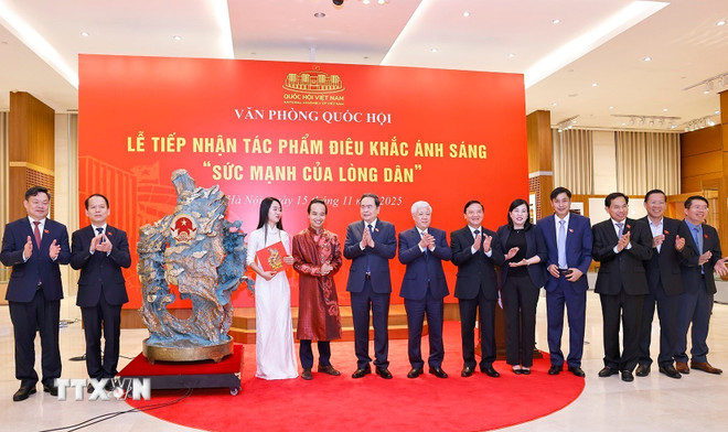 Nguồn VietnamPlus : https://www.vietnamplus.vn/le-tiep-nhan-tac-pham-dieu-khac-anh-sang-suc-manh-cua-long-dan-post1077139.vnp