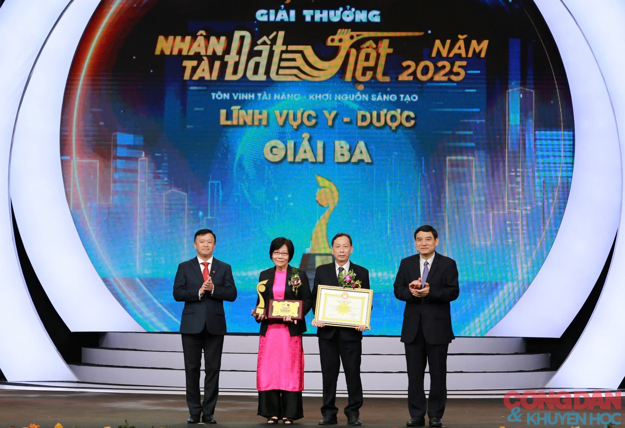 Ban tổ chức Giải thưởng Nhân tài Đất Việt trao giải Ba lĩnh vực Y - Dược cho nhóm tác giả.