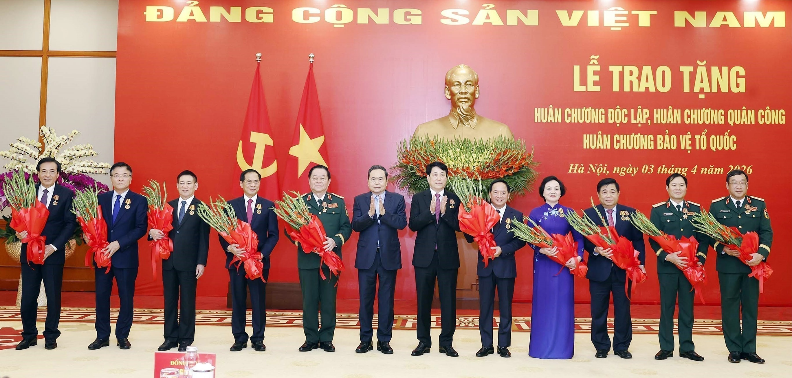 Tại buổi lễ, Tổng Bí thư Tô Lâm đã trao tặng Huân chương Độc lập hạng Nhất cho Ủy viên Bộ Chính trị khóa XIII, Thủ tướng Chính phủ Phạm Minh Chính và Huân chương Quân công hạng Nhất cho các đồng chí: Ủy viên Bộ Chính trị khóa XIII, Chủ tịch nước, Đại tướng Lương Cường; Ủy viên Bộ Chính trị, Phó Bí thư Quân ủy Trung ương, Bộ trưởng Bộ Quốc phòng, Đại tướng Phan Văn Giang; Ủy viên Bộ Chính trị khóa XIII, nguyên Giám đốc Học viện Chính trị quốc gia Hồ Chí Minh, Chủ tịch Hội đồng Lý luận Trung ương Nguyễn Xuân Thắng; Ủy viên Trung ương Đảng khóa XIII, Phó Chủ tịch Quốc hội, Thượng tướng Trần Quang Phương; Ủy viên Trung ương Đảng khóa XIII, Phó Thủ tướng Chính phủ Nguyễn Chí Dũng.