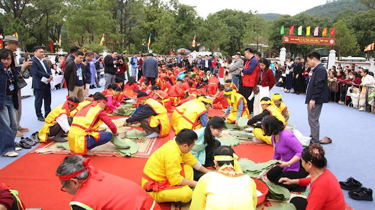 Phần thi gói bánh chưng tại Lễ hội mùa Xuân Côn Sơn-Kiếp Bạc.