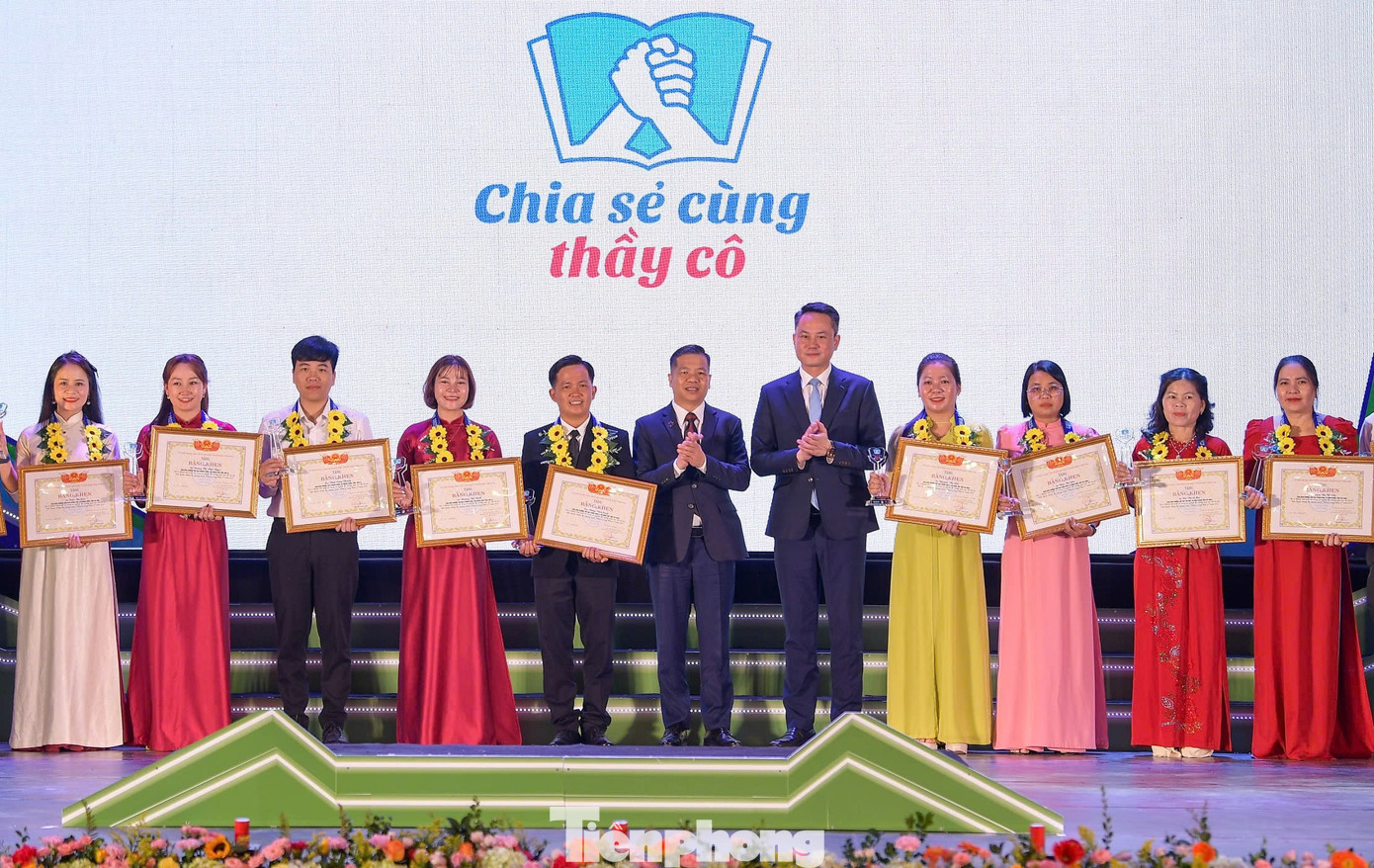 Các đại biểu và thầy cô được tuyên dương trong chương trình. Ảnh: Dương Triều