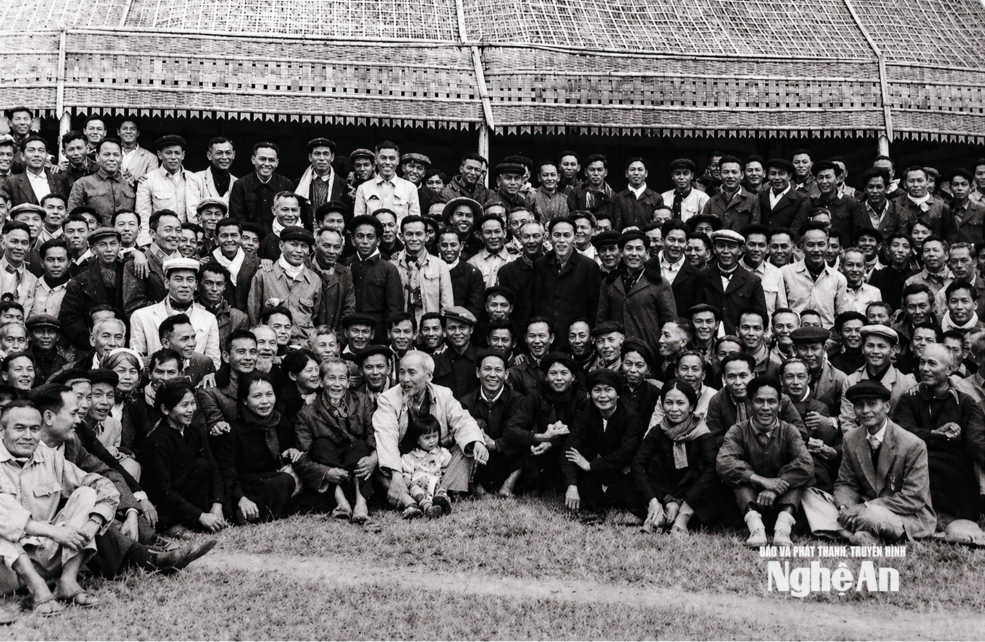 Chủ tịch Hồ Chí Minh gặp mặt các cán bộ lão thành cách mạng tại Khu Di tích Kim Liên ngày 9/12/1961. Ảnh tư liệu