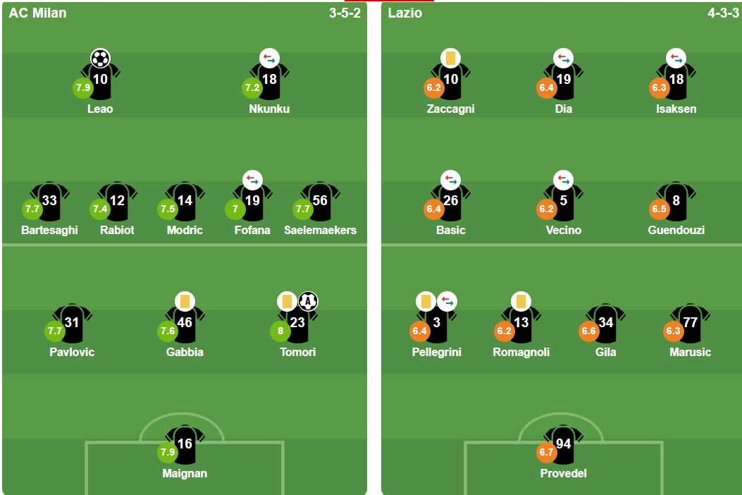 Trong một thế trận căng thẳng và chặt chẽ tại San Siro, một khoảnh khắc lóe sáng của cá nhân đã tạo nên sự khác biệt. Phút 51, từ một pha phối hợp nhịp nhàng bên cánh phải, Fofana chuyền bóng cho Fikayo Tomori băng xuống. Trung vệ người Anh thực hiện một đường căng ngang chuẩn xác để Rafael Leao di chuyển thông minh và dứt điểm gọn gàng ở cự ly gần, ghi bàn thắng duy nhất của trận đấu.
