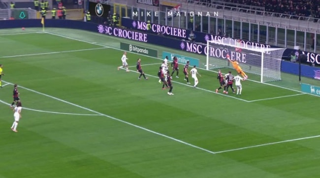 Trong suốt trận đấu, đặc biệt là trong hiệp một khi Lazio chơi chủ động hơn, Maignan liên tục phải làm việc vất vả. Phút 32, anh lại một lần nữa chiến thắng trong pha đối mặt với cú sút góc hẹp của Mattia Zaccagni. Tới phút 71, thủ thành người Pháp tiếp tục thể hiện sự chắc chắn khi ôm gọn cú dứt điểm của Castellanos, dập tắt hy vọng của đội khách.