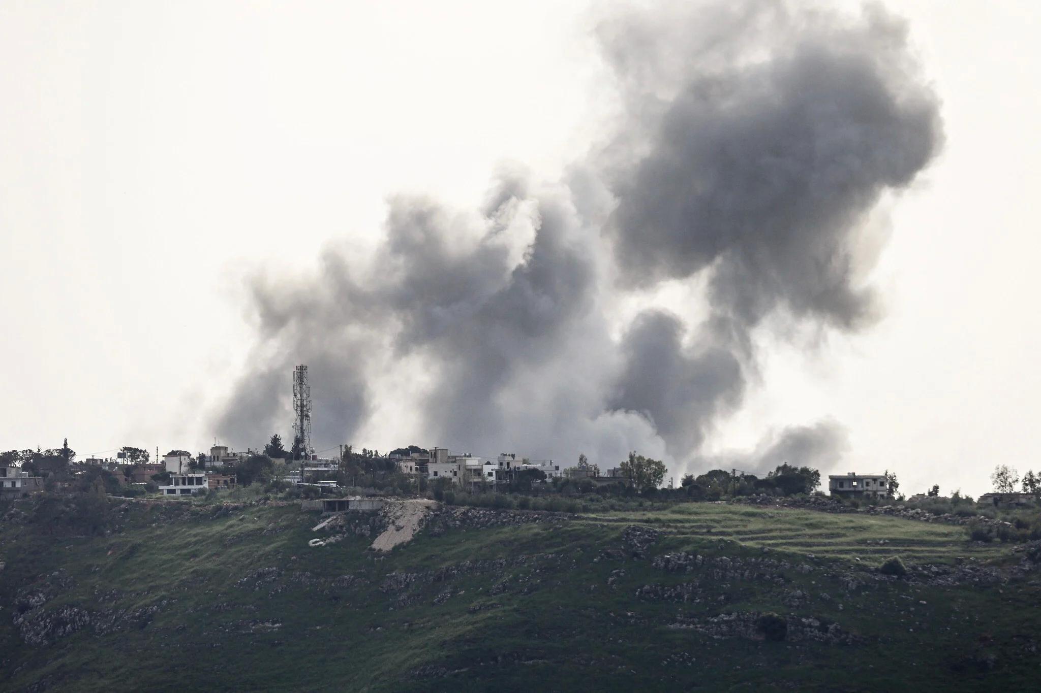 Khói bốc lên tại thị trấn Arnoun (miền nam Lebanon) sau một cuộc không kích, vào ngày 26-4. Ảnh: AFP