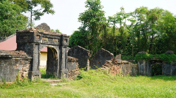 Cổng và tường thành tại di tích Điện Voi Ré đã bị xuống cấp, hư hại và đổ sập một phần.