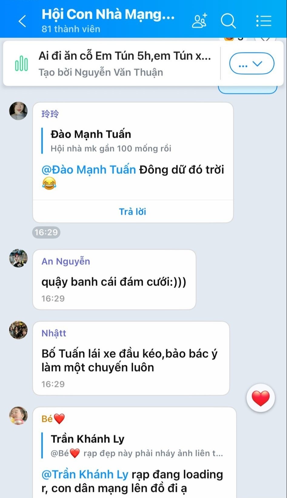 Mạnh Tuấn tạo nhóm chat để các vị khách lạ trao đổi thông tin.
