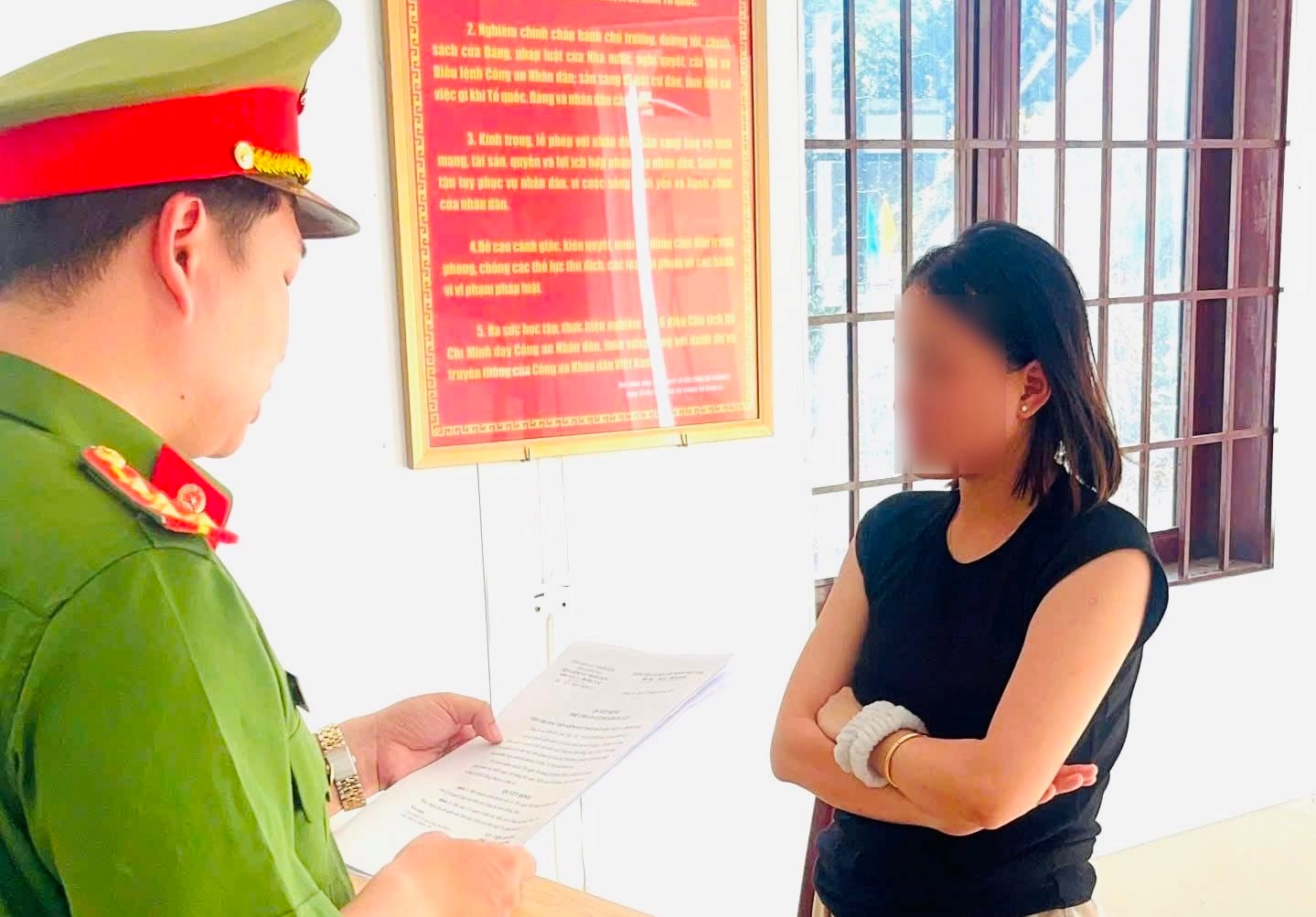 Cơ quan Cảnh sát điều tra tống đạt Quyết định khởi tố bị can đối với Võ Văn Thục Vy (Ảnh: CACC)