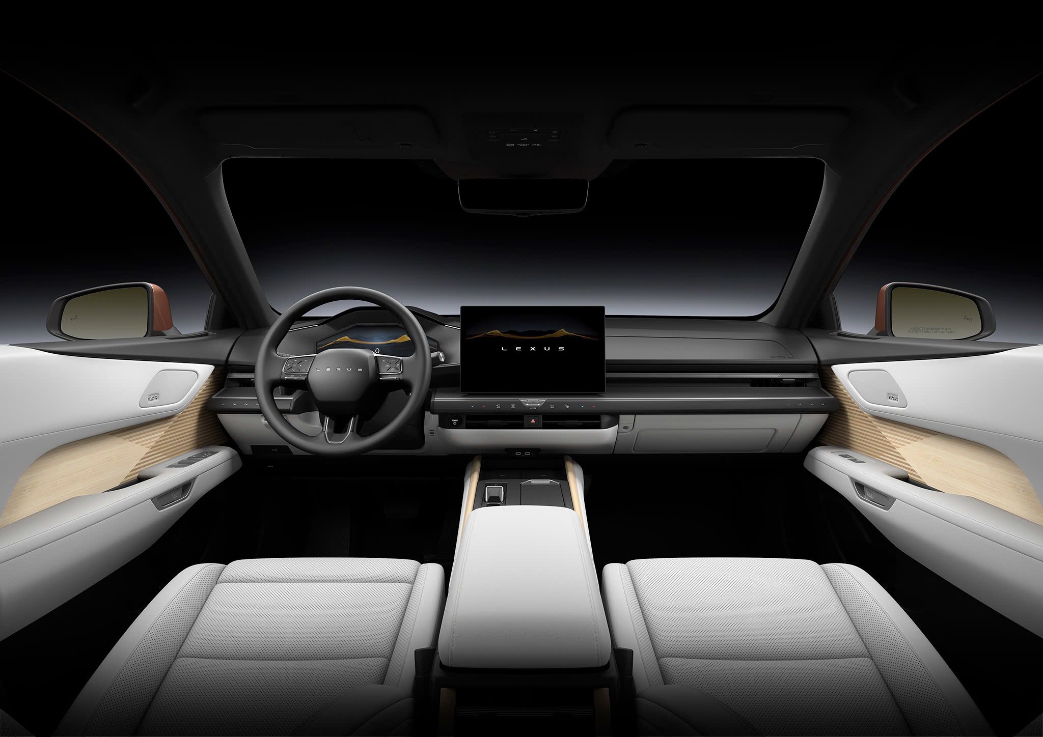 Đầu xe có cản trước khép kín trên bản thuần điện, bản hybrid có tản nhiệt hình con vụ đặc trưng của Lexus nhưng nhỏ hơn. Đèn pha trước và đèn hậu phía sau đều có đèn LED hình chữ L đi kèm. Hông xe xuất hiện tay nắm cửa dạng ẩn mới.