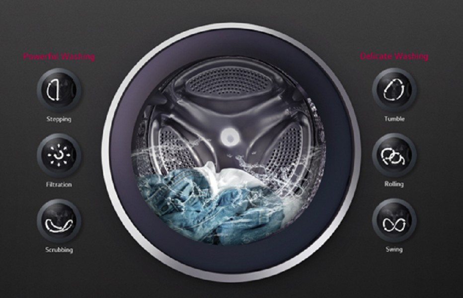 Kết hợp cùng động cơ Inverter Direct Drive và 6 Motion, máy giặt mang lại khả năng làm sạch sâu mà vẫn bảo vệ sợi vải tốt hơn 10%.