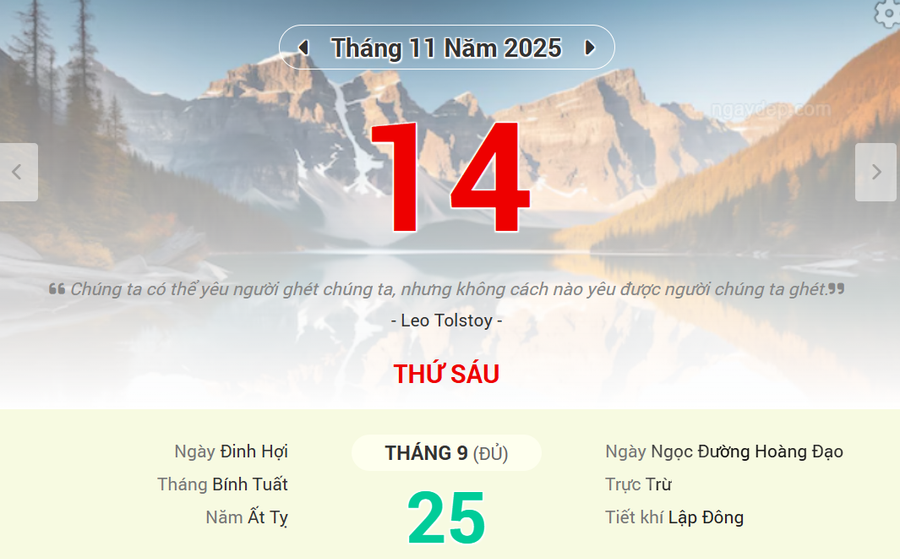 Âm lịch: Ngày 25/9/2025 Tức ngày Đinh Hợi, tháng Bính Tuất, năm Ất Tỵ.