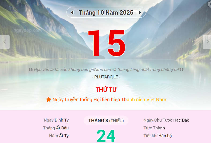 Âm lịch: Ngày 24/8/2025 Tức ngày Đinh Tỵ, tháng Ất Dậu, năm Ất Tỵ.