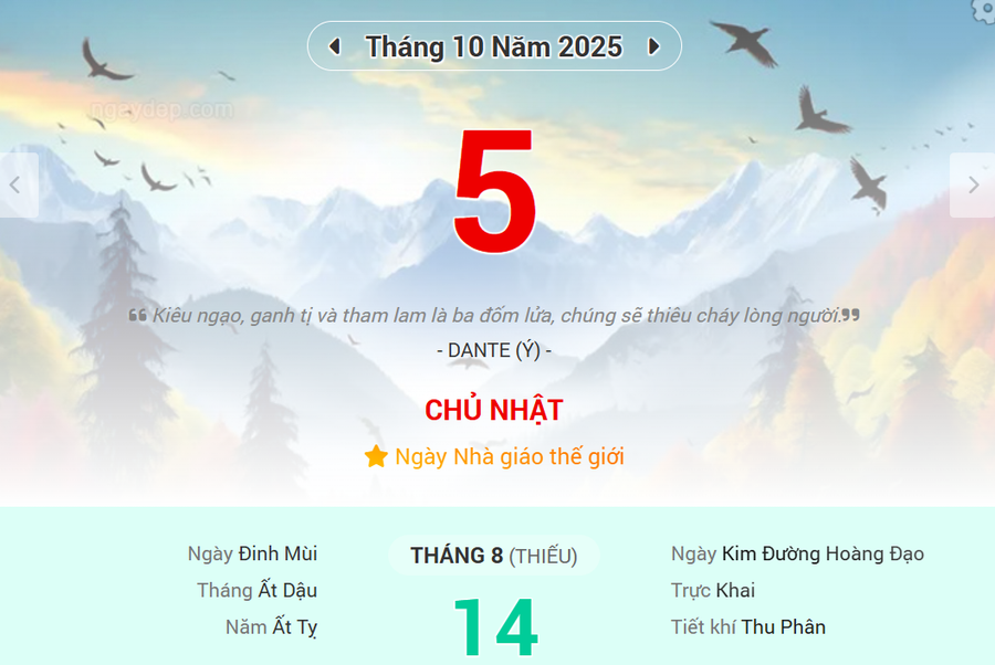 Thông tin về lịch âm ngày 5/10