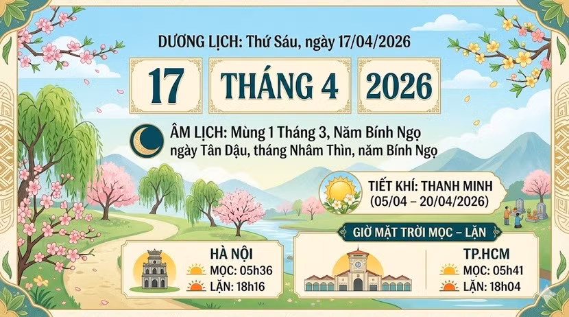 Thông tin lịch âm dương hôm nay 17/4/2026