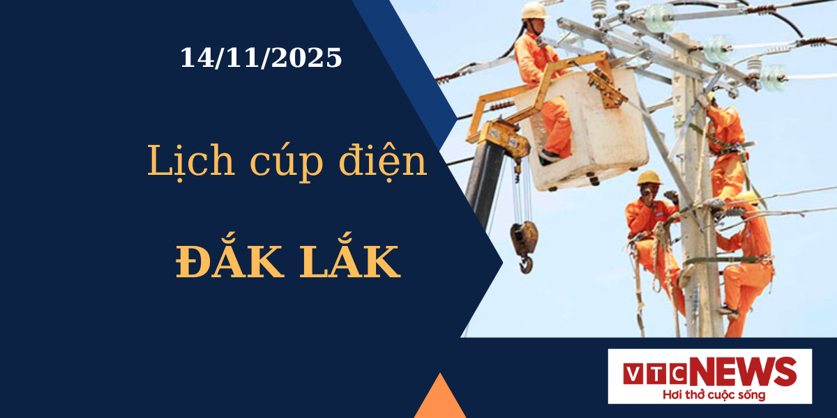 Báo Điện tử VTC News cập nhật mới nhất lịch mất điện, cúp điện các khu vực tại Đắk Lắk ngày 14/11/2025 từ website cổng thông tin Điện lực miền Nam.