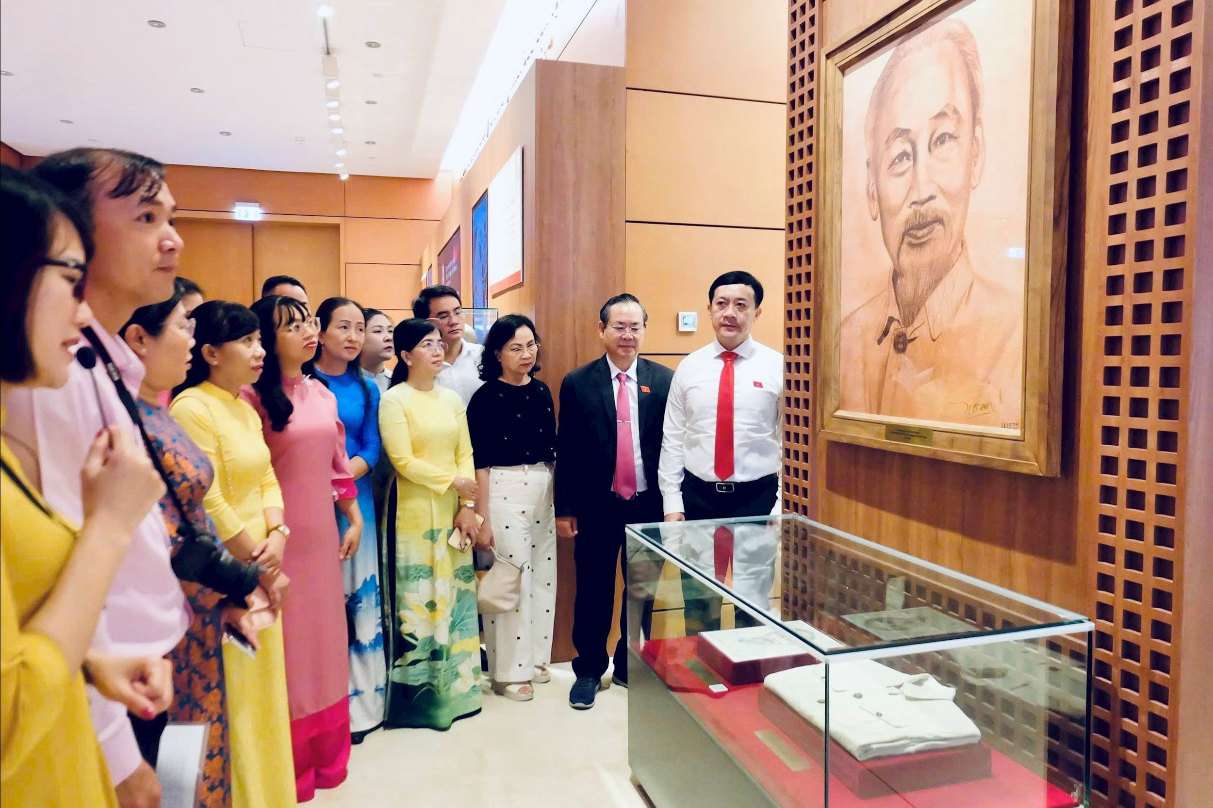 Chiêm ngưỡng bức chân dung Chủ tịch Hồ Chí Minh do nguyên Chủ tịch Quốc hội Nguyễn Thị Kim Ngân - nữ Chủ tịch Quốc hội đầu tiên - vẽ và trao tặng Bảo tàng, chị Hồng Mai đặc biệt chú ý tới đôi mắt Bác vô cùng ấm áp, cho thấy người vẽ đặt nhiều tâm huyết để thực hiện tác phẩm. Tác phẩm ấy không chỉ mang giá trị nghệ thuật mà còn gửi gắm tình cảm và lòng kính trọng của những người con miền Nam đối với Bác Hồ.