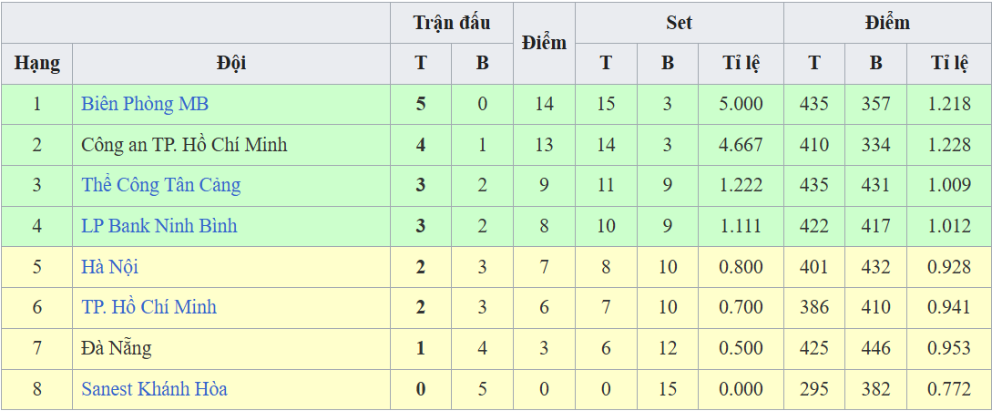 Bảng xếp hạng bảng nam trước ngày thi đấu 16-4.