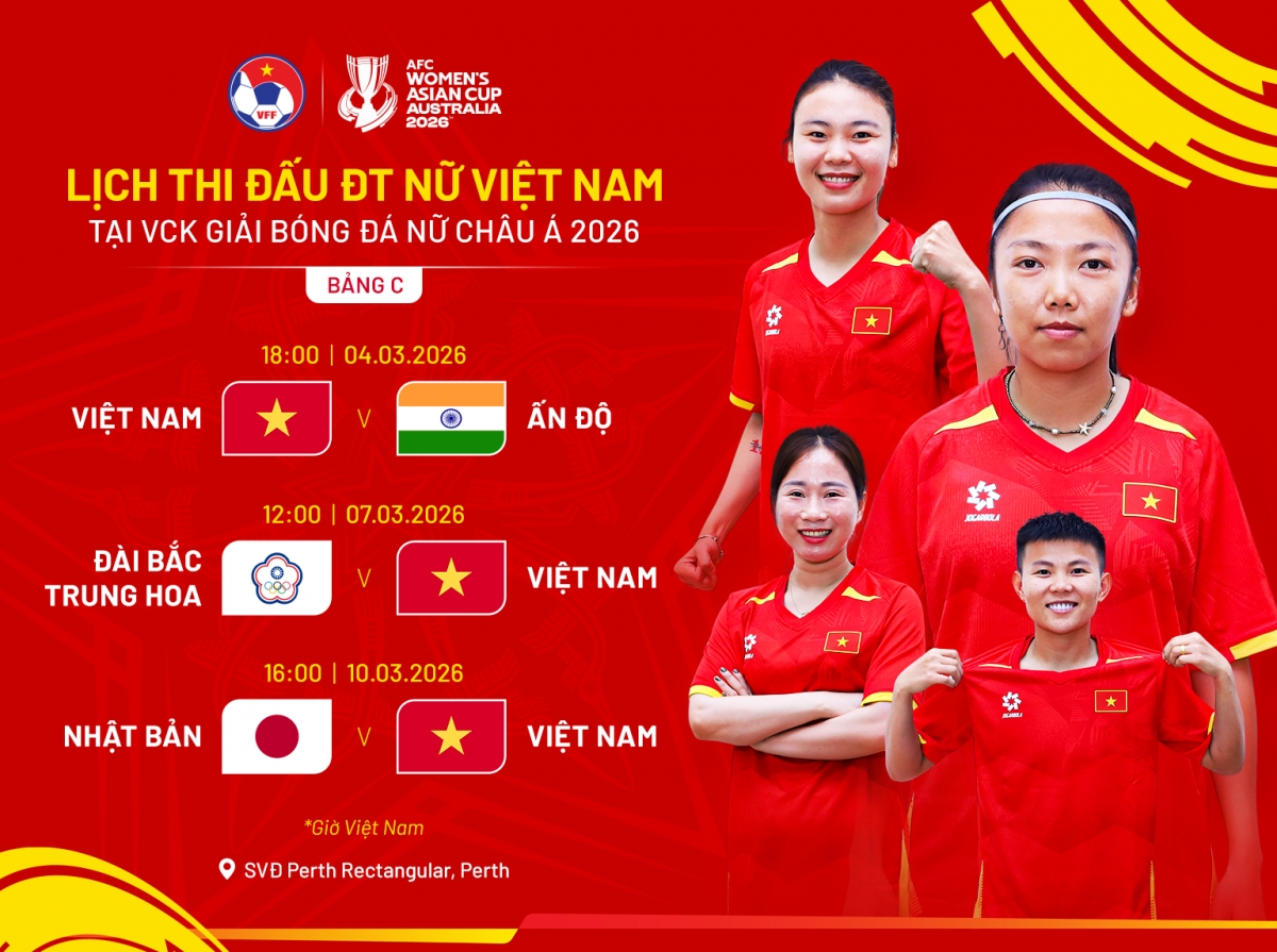 VCK Asian Cup nữ 2026 diễn ra từ ngày 1/3 đến 21/3/2026 tại ba thành phố Sydney, Perth và Gold Coast của Australia. Đây đều là những địa điểm từng tổ chức World Cup nữ 2023, hứa hẹn mang đến điều kiện thi đấu lý tưởng cho các đội tuyển.