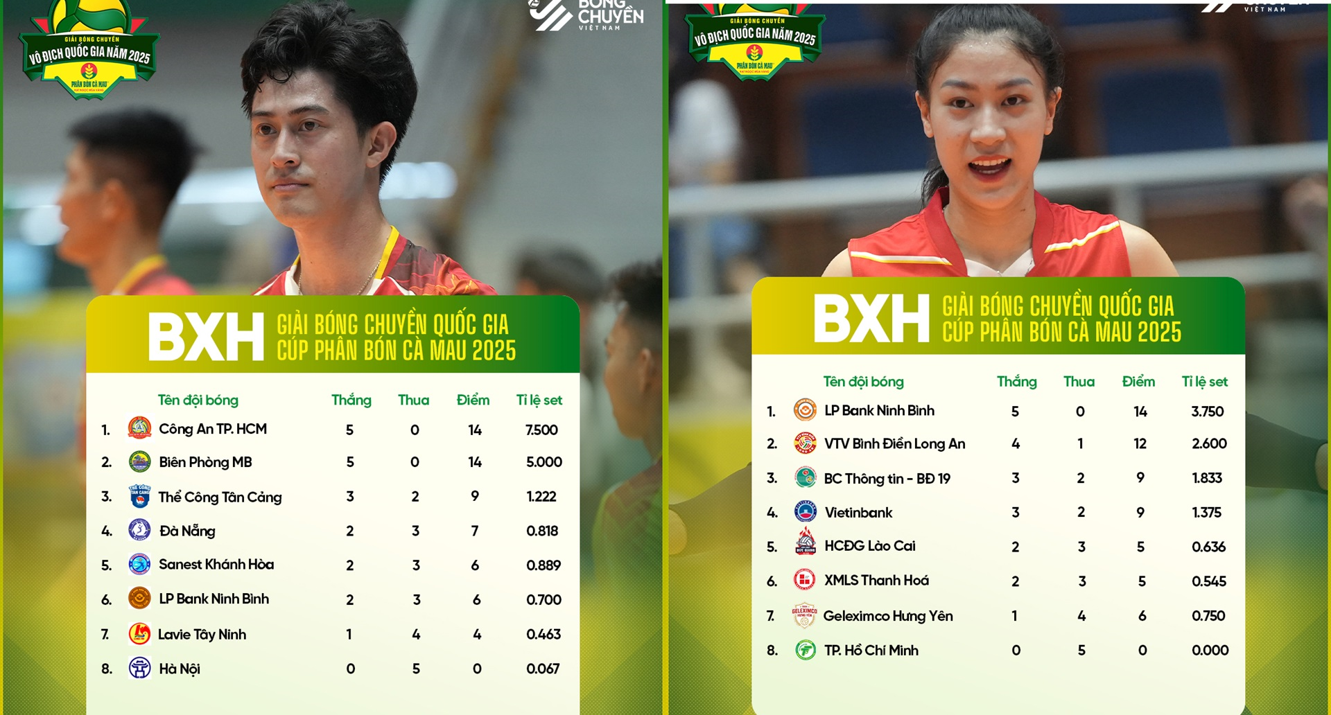 Bảng xếp hạng Giải bóng chuyền vô địch quốc gia 2025 sau giai đoạn 1. Ảnh: Bóng chuyền Việt Nam