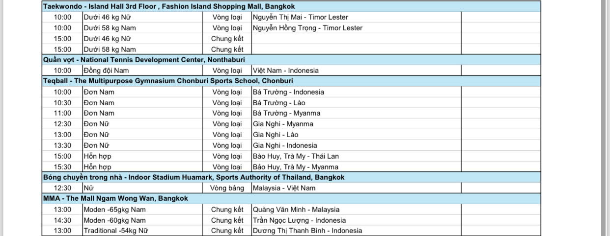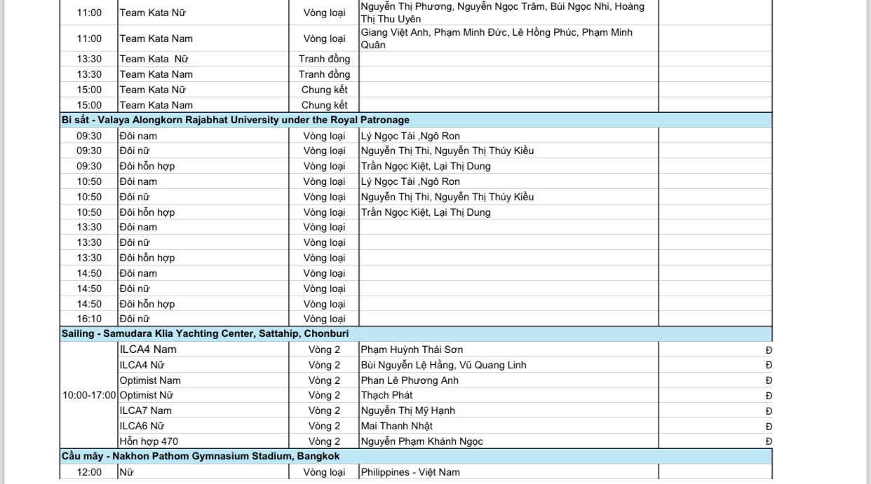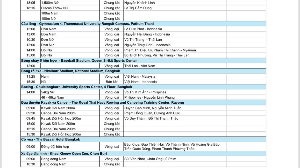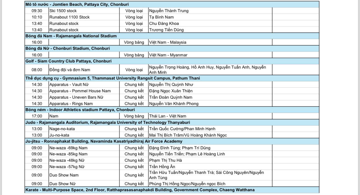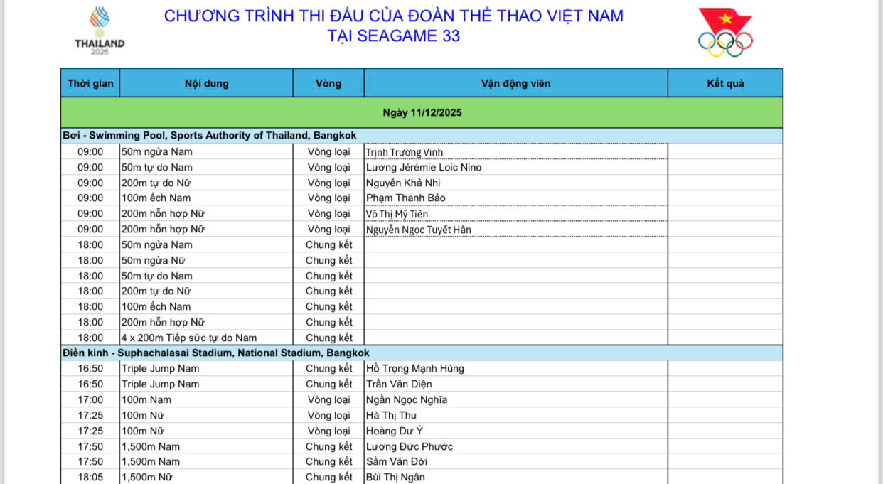 Lịch thi đấu SEA Games 33 hôm nay (11-12).