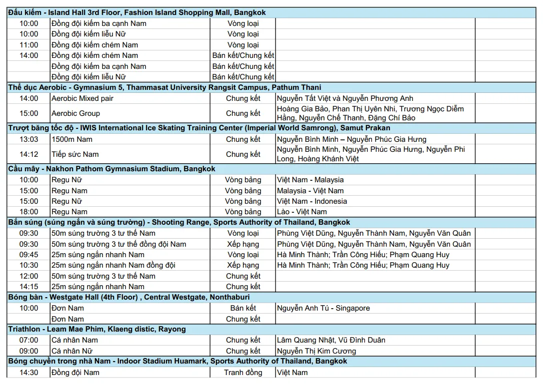 Lịch thi đấu SEA Games 33 hôm nay 18/12 của đoàn Thể thao Việt Nam: