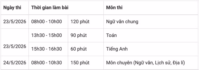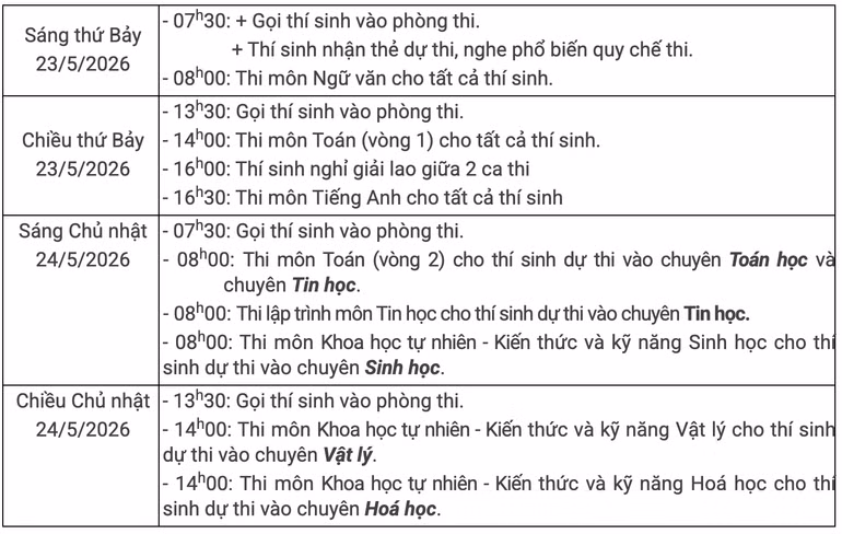 Kỳ thi vào lớp 10 Trường trung học phổ thông chuyên Khoa học Xã hội và Nhân văn năm học 2026-2027 diễn ra ngày 23 và 24/5: