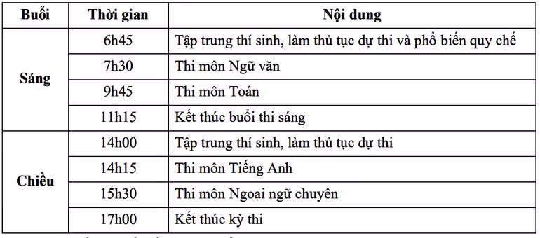 Các thí sinh sẽ dự thi 4 môn gồm: Ngữ văn, Toán, Tiếng Anh, Ngoại ngữ chuyên