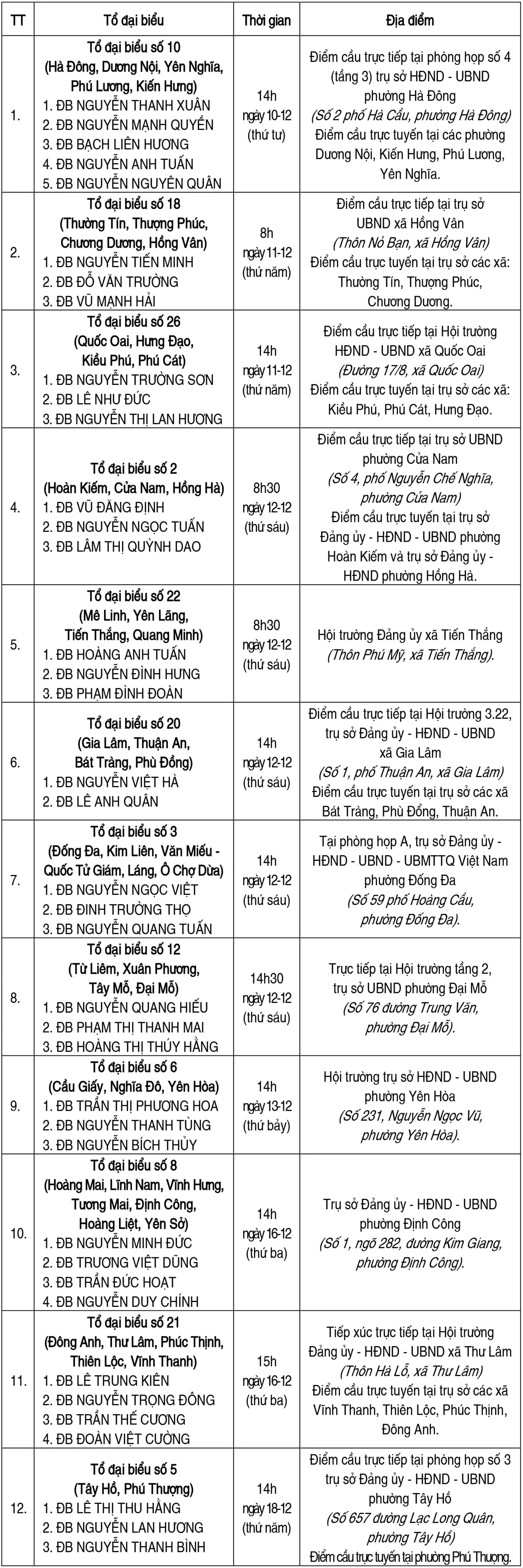 Lịch tiếp xúc cử tri (đợt 1) của đại biểu HĐND TP Hà Nội