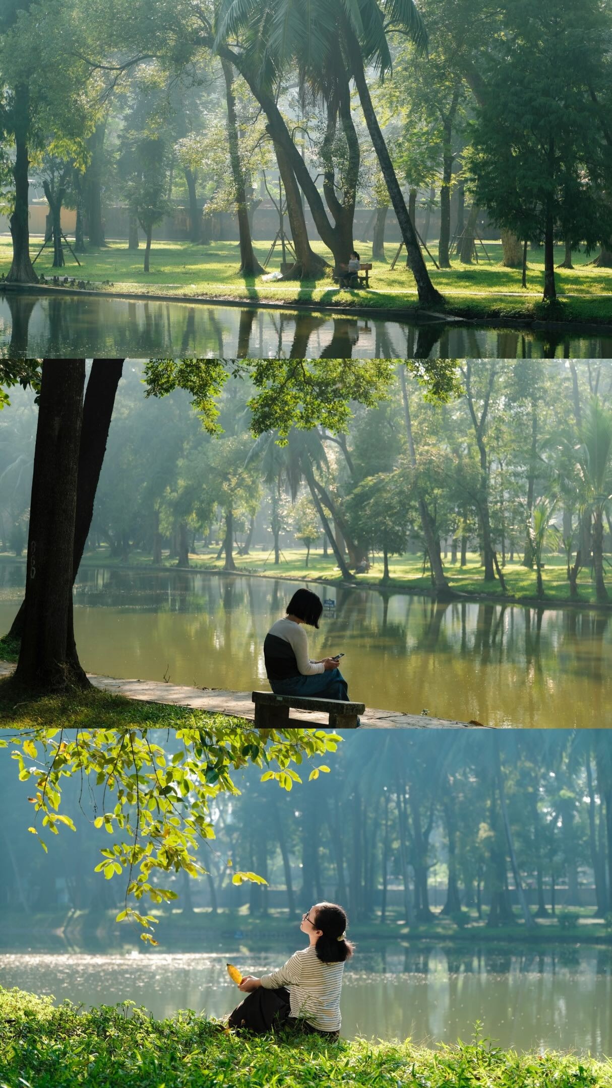 Nếu Hồ Gươm nổi lên là chiếc background xinh để chụp ảnh thì "công viên tour" rộ lên từ những chiếc reels, video ngắn bắt gọn một khoảnh khắc nhỏ lá rơi hay nắng xuyên qua tán cây. Giữa hoa tươi, cỏ xanh, bạn "ngã" đâu cũng có một góc chill thật thơ để đọc sách, nghe nhạc, đi dạo hay quay một clip ootd (outfit of the day - trang phục hôm nay)...