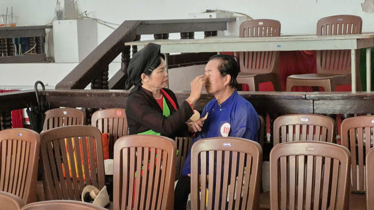 Liền chị đang làm đẹp cho liền anh trước khi trình diễn