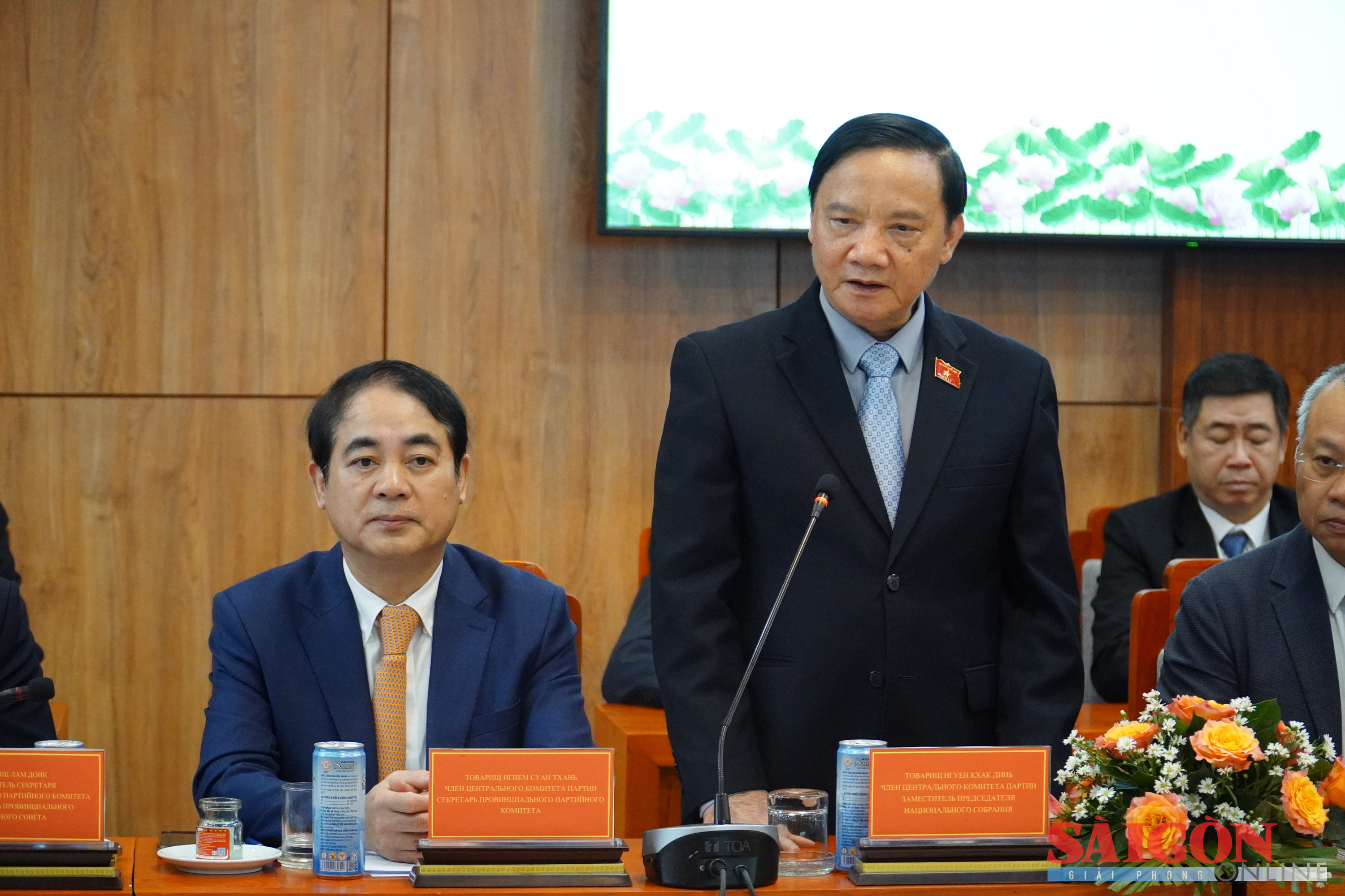 Đồng chí Nguyễn Khắc Định, Ủy viên Trung ương Đảng, Phó Chủ tịch Quốc hội dự và chủ trì buổi làm việc. Về phía tỉnh Khánh Hòa có đồng chí Nghiêm Xuân Thành, Ủy viên Trung ương Đảng, Bí thư Tỉnh ủy; và lãnh đạo các sở, ban ngành của tỉnh.
