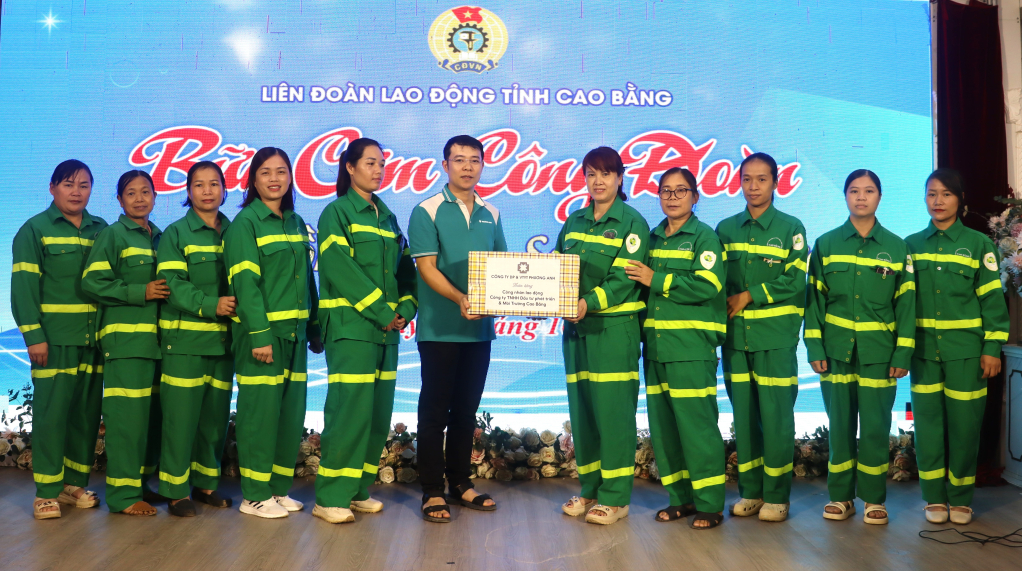 Lãnh đạo Công ty Vật tư Y tế Phương Anh trao quà động viên công nhân lao động tại chương trình “Bữa cơm Công đoàn”.