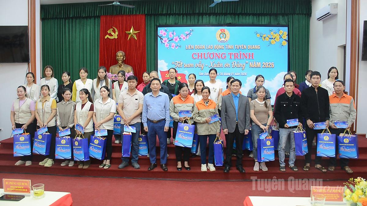 Đồng chí Chủ tịch Liên đoàn Lao động tỉnh Triệu Tài Phong và lãnh đạo xã Sơn Dương đã trao 200 suất quà Tết tặng đoàn viên, người lao động có hoàn cảnh khó khăn đang làm việc tại các doanh nghiệp trong xã, mỗi suất quà trị giá 500.000 đồng tiền mặt và túi quà. Tổng kinh phí tặng quà hơn 100 triệu đồng.