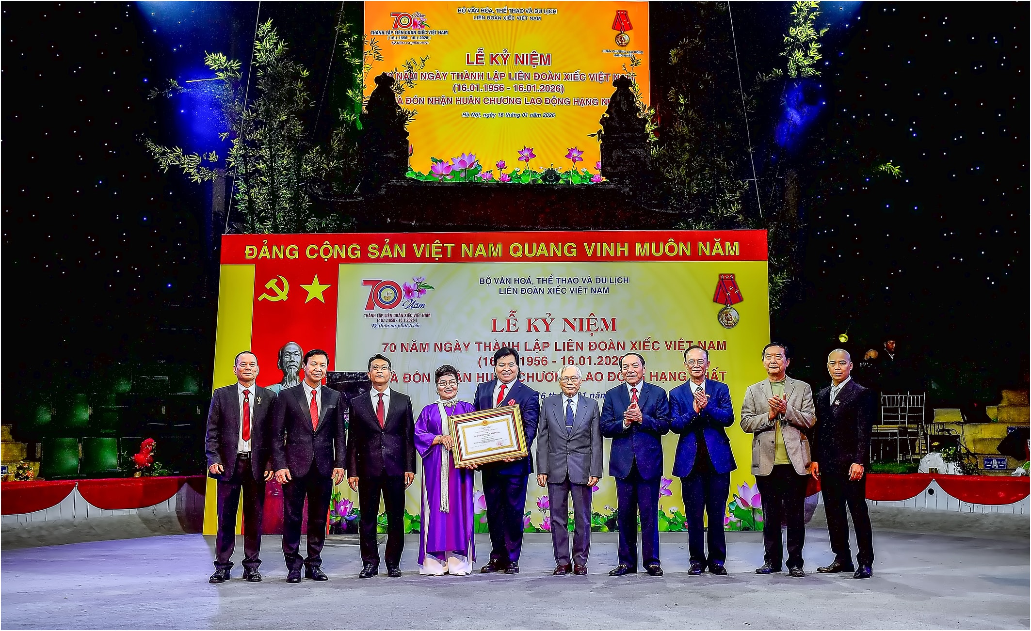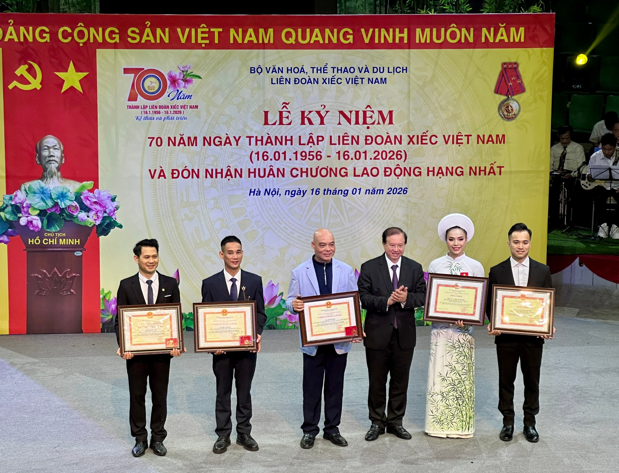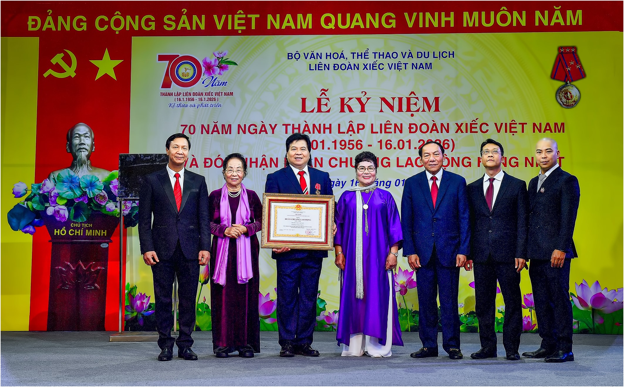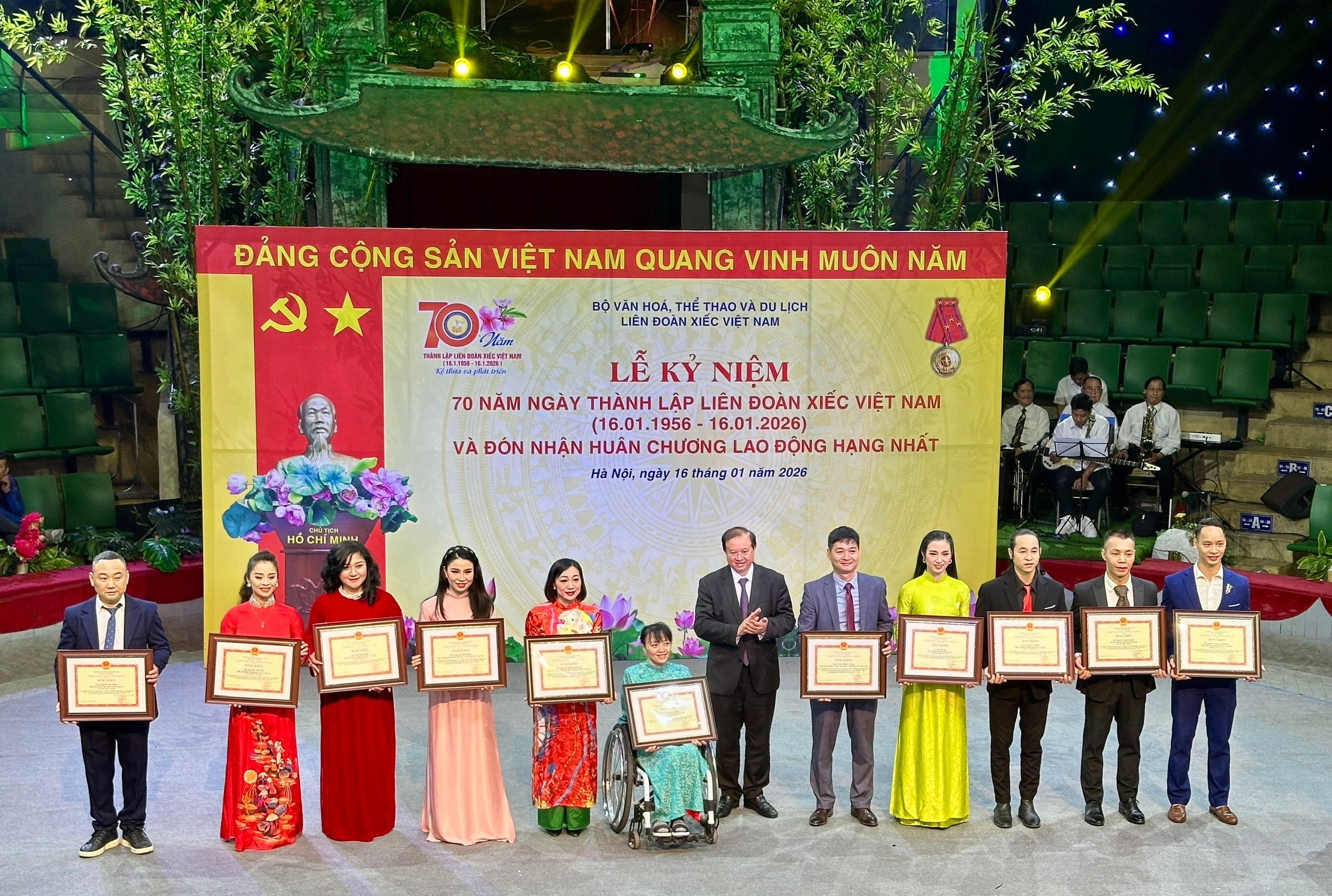 Lãnh đạo Liên đoàn Xiếc Việt Nam các thời kỳ đón nhận Huân chương Lao động hạng Nhất