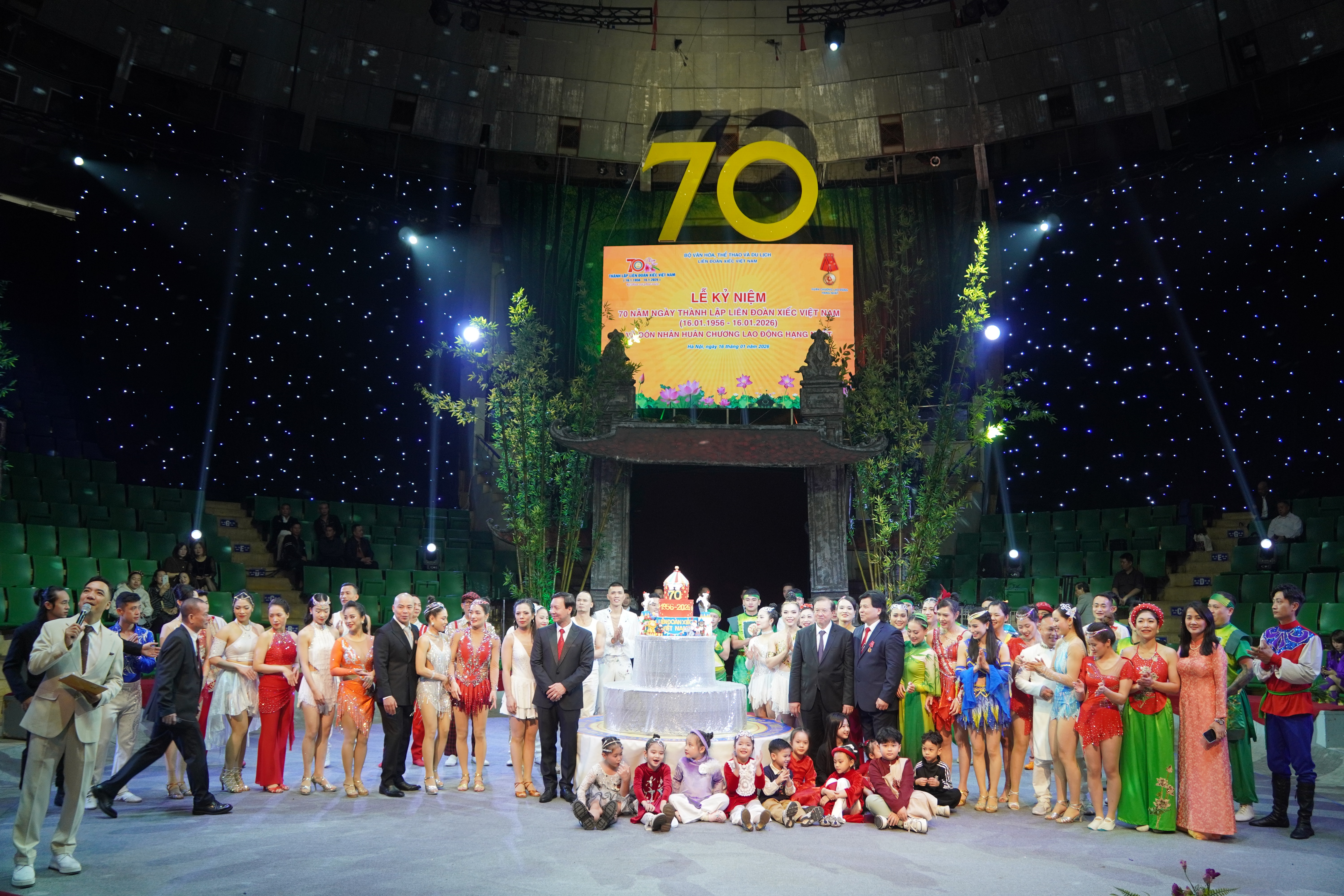 Đại biểu dự cắt bánh mừng kỷ niệm 70 năm Ngày thành lập Liên đoàn Xiếc Việt Nam