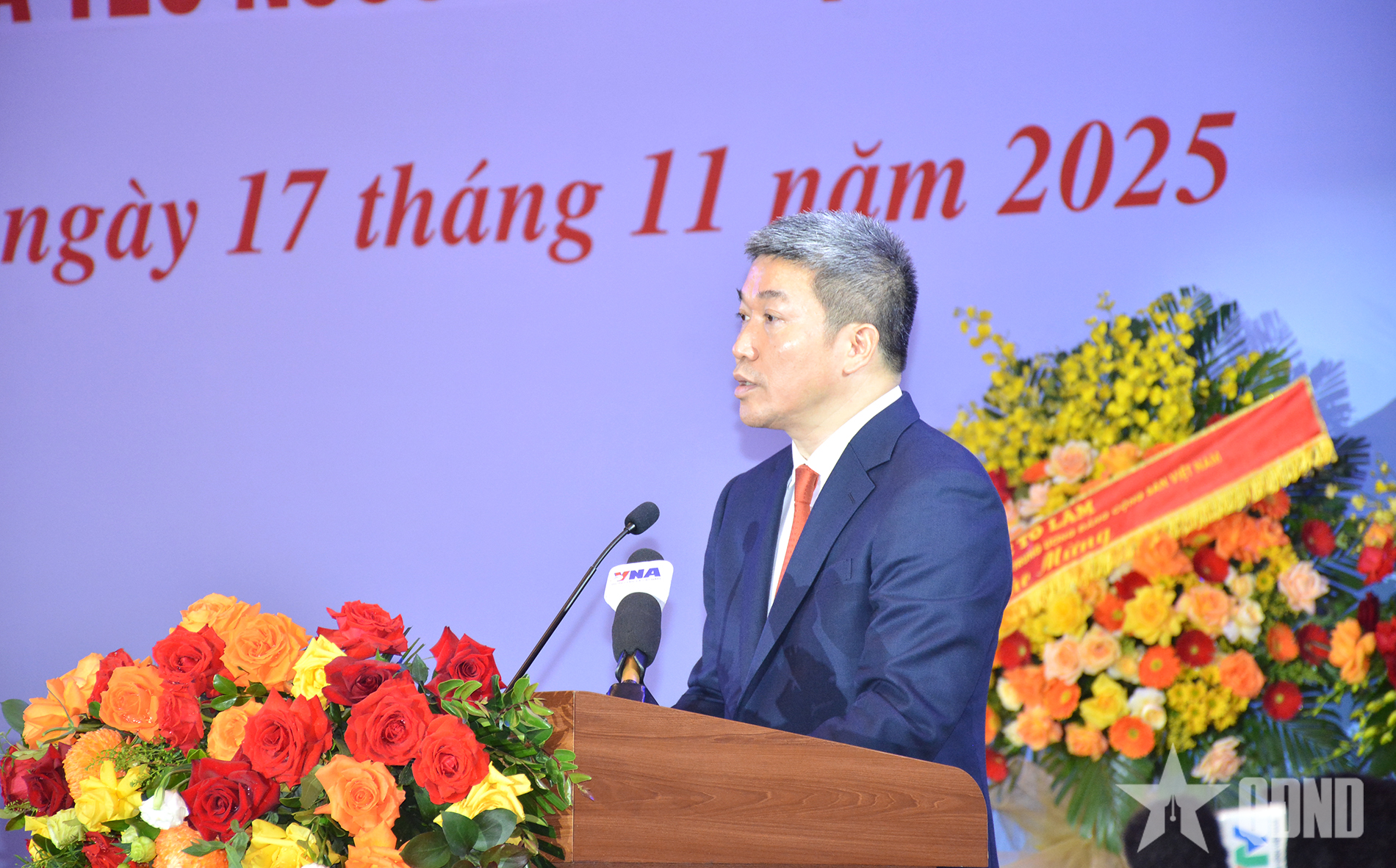 Chủ tịch Liên hiệp các tổ chức hữu nghị Việt Nam (VUFO) Phan Anh Sơn đọc diễn văn.