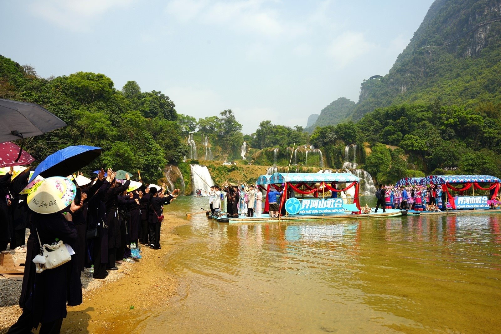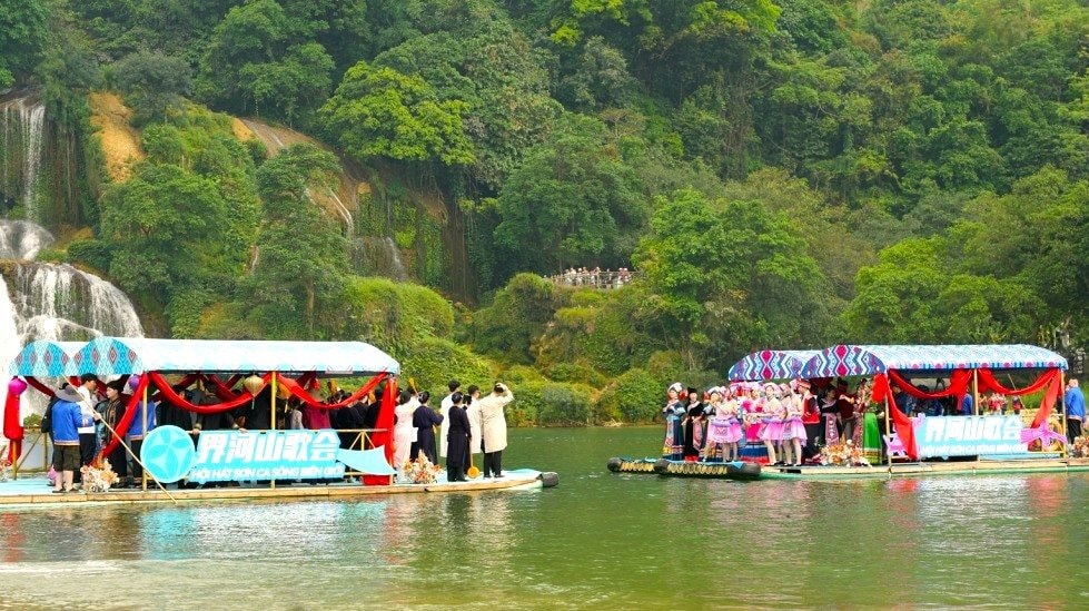 Tại chương trình, 30 nghệ sĩ địa phương hai bên ngồi thuyền hát đối trên sông biên giới (khu vực Thác Bản Giốc - Đức Thiên) với các làn điệu Then tính, Hà lều, Lượn…; biểu diễn các tiết mục văn nghệ mang đậm bản sắc văn hóa dân tộc và tính đại diện văn hóa địa phương; tham gia hoạt động tập thể tạo không khí hào hứng, phấn khởi cho nhân dân địa phương và du khách hai bên.