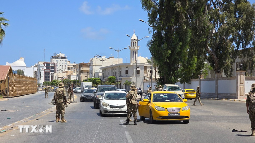 Lực lượng an ninh Libya tuần tra tại thủ đô Tripoli, ngày 13/5/2025. (Ảnh: THX/TTXVN).