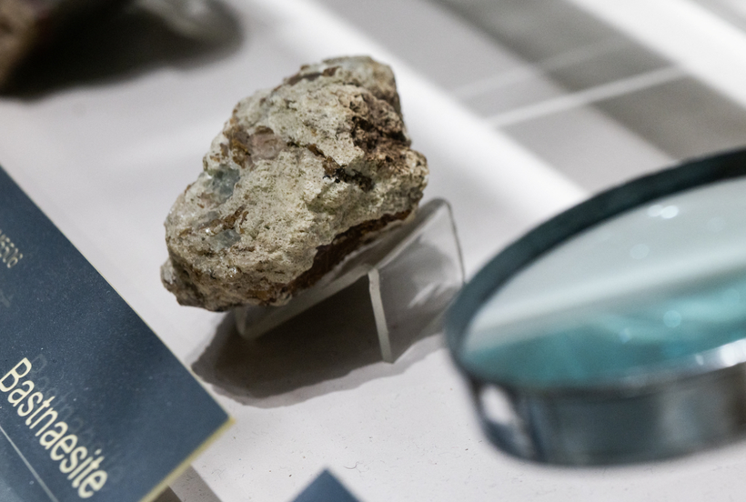 Một mẫu quặng bastnaesite, một loại khoáng chất được sử dụng trong ngành công nghiệp đất hiếm để chiết xuất các nguyên tố, được trưng bày tại Bảo tàng Địa chất Trung Quốc ở Bắc Kinh. Ảnh: Reuters.