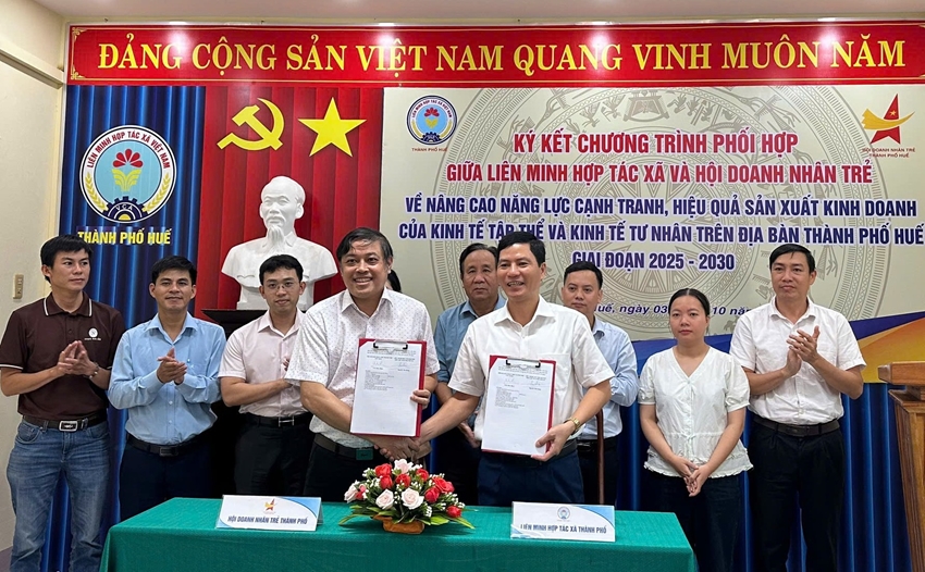 Phát biểu tại lễ ký kết, ông Nguyễn Văn Hùng, Phó Chủ tịch Phụ trách Liên minh Hợp tác xã thành phố Huế khẳng định: “Sự đồng hành của Hội Doanh nhân trẻ là nguồn động viên, khích lệ lớn để các hợp tác xã tự tin đổi mới phương thức quản lý, đẩy mạnh ứng dụng khoa học công nghệ, mở rộng liên kết sản xuất – tiêu thụ sản phẩm. Chúng tôi cam kết sẽ tạo môi trường thuận lợi, hỗ trợ tối đa để các mô hình kinh tế tập thể ngày càng khẳng định vai trò trong phát triển kinh tế - xã hội của thành phố”.