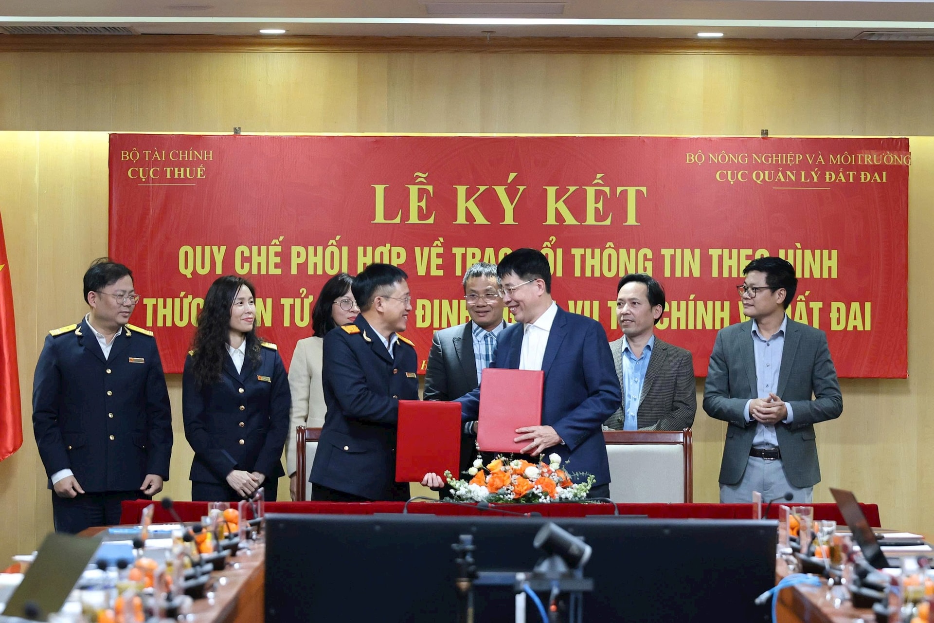 Ngày 7-1, Cục Thuế (Bộ Tài chính) và Cục Quản lý đất đai (Bộ Nông nghiệp và Môi trường) đã ký quy chế phối hợp, trao đổi thông tin theo hình thức điện tử để xác định nghĩa vụ tài chính về đất đai.