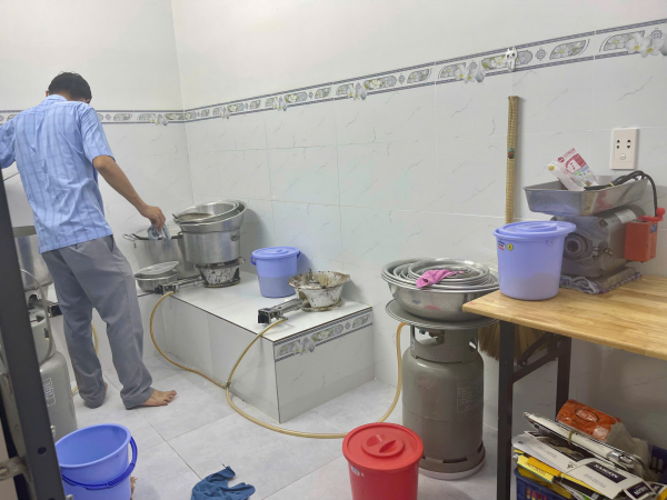Chiều 3/3, UBND phường Vũng Tàu đã tổ chức đoàn kiểm tra liên ngành tiến hành làm việc với cơ sở bán bánh mì trên đường Đồ Chiểu. Thời điểm kiểm tra tại cơ sở, người bán hàng cho biết đây chỉ là địa điểm buôn bán, còn điểm chế biến nằm trên đường Triệu Việt Vương.