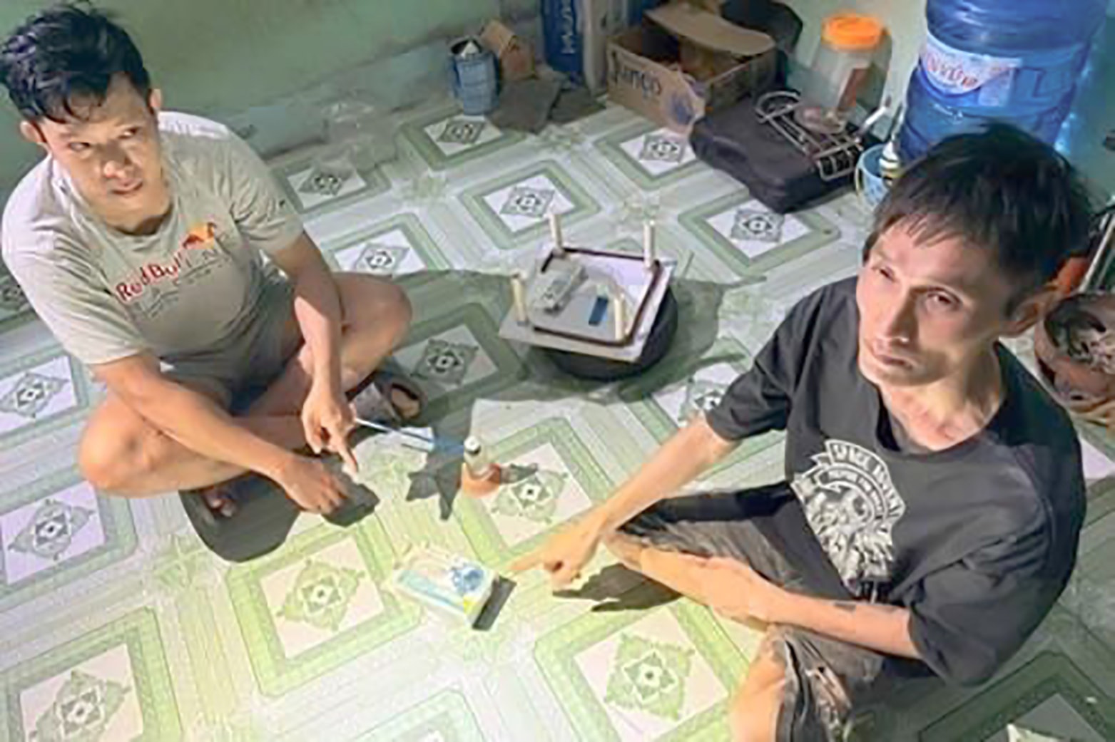 Tiến hành kiểm tra hành chính, lực lượng chức năng phát hiện Vinh và Trần Quốc Vương (SN 1995, trú tại thôn Hà Thủy 3) cùng có mặt tại hiện trường.
