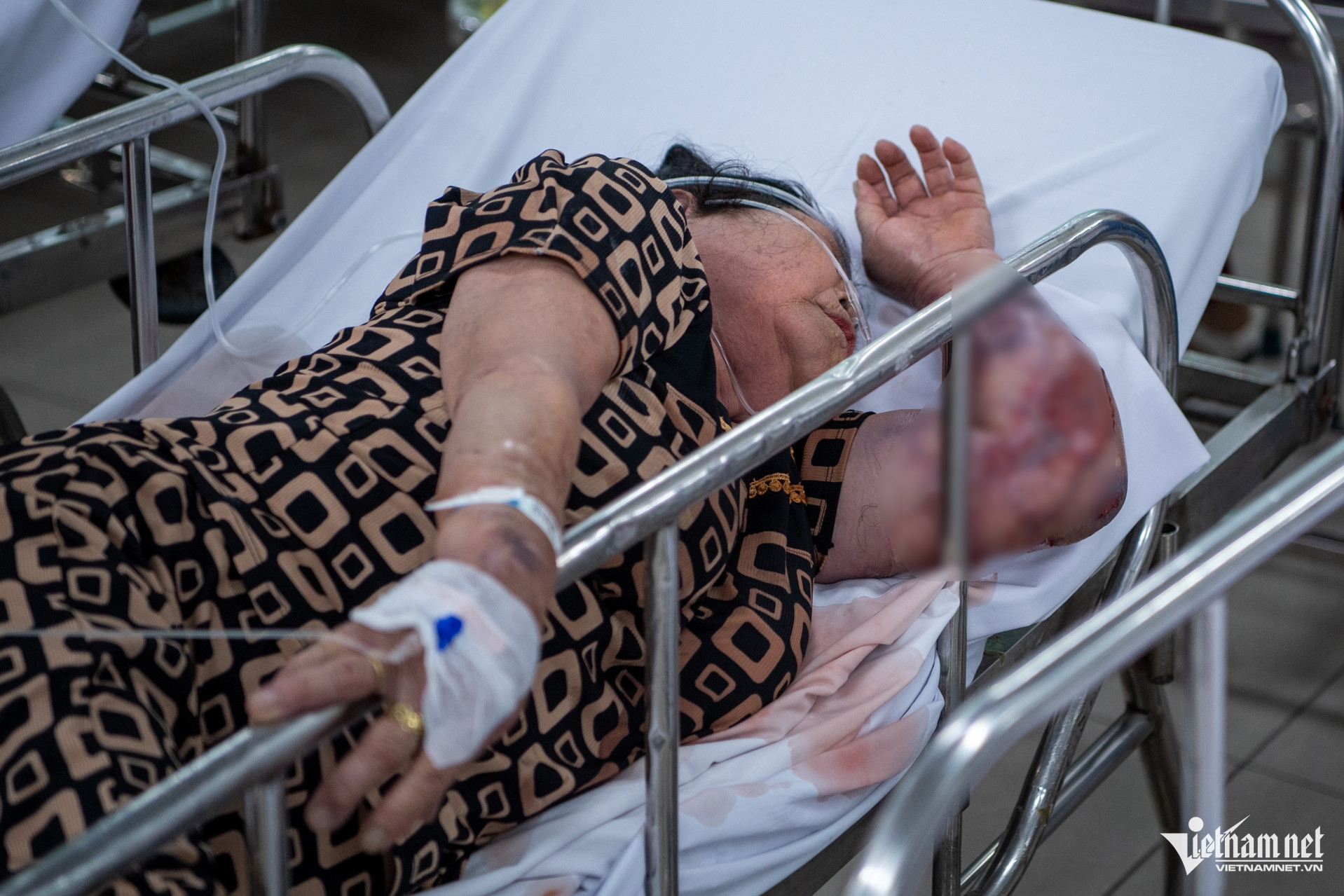 Trong ảnh, một người phụ nữ bị bỏng nặng ở cánh tay do bất cẩn trong lúc nấu nướng ngày Tết.