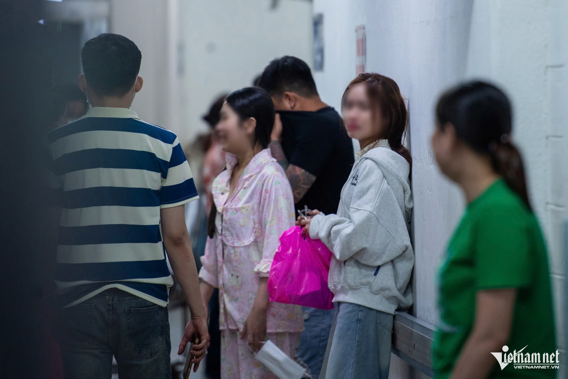 Bên ngoài phòng cấp cứu, chị N. (áo xám) không kiềm được nước mắt khi nghe bác sĩ thông báo người thân có tiên lượng xấu, cần phải làm phẫu thuật gấp.