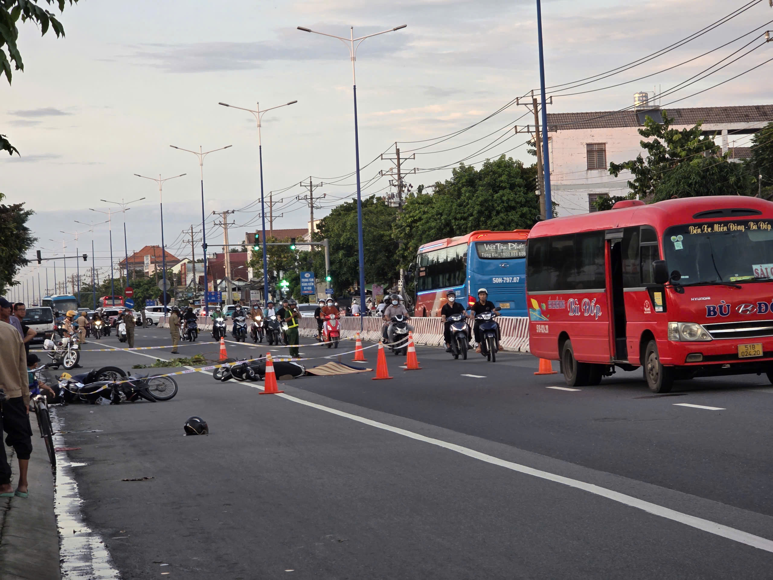 Tại hiện trường, hai xe máy trong vụ va chạm đầu tiên nằm trong làn đường xe máy, còn xe máy của nạn nhân Nguyễn Văn H. nằm trong làn ô tô. Cả ba xe máy bị hư hỏng nhẹ, riêng xe khách bị trầy xước phần đầu.