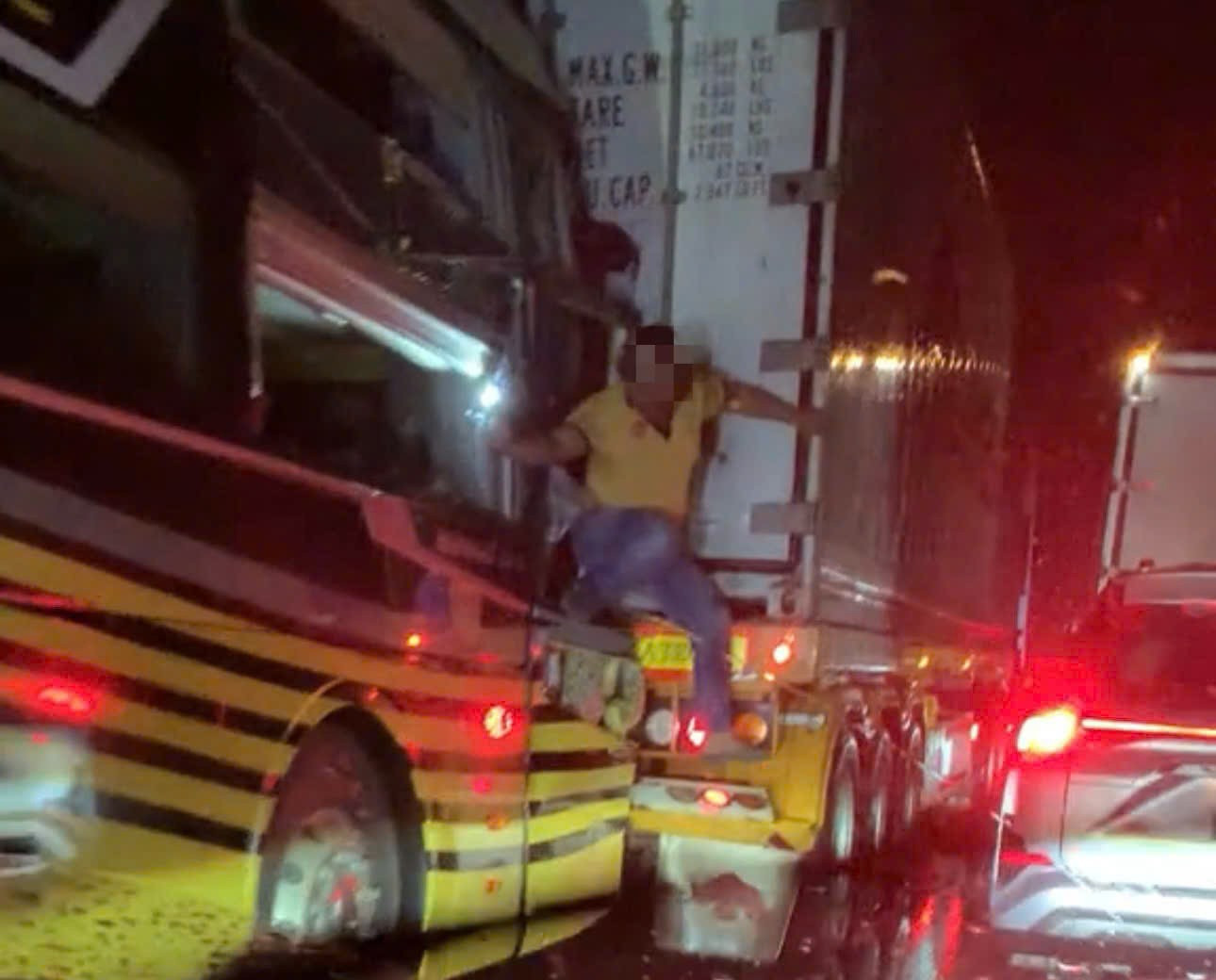 Cú tông khiến đầu xe khách dính chặt vào đuôi xe container. Tài xế bị kẹt trong cabin và chỉ thoát ra được sau khi lực lượng cứu hộ dùng xe cẩu hỗ trợ.