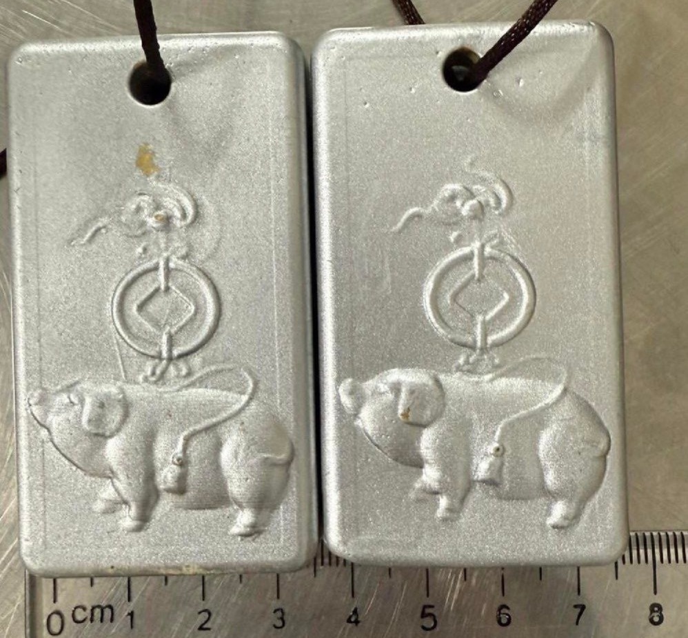 2 miếng kim loại nghi là vàng được phủ bạc tinh vi để qua mặt cơ quan chức năng bị phát hiện ngày 10/4. (Ảnh đơn vị cung cấp)