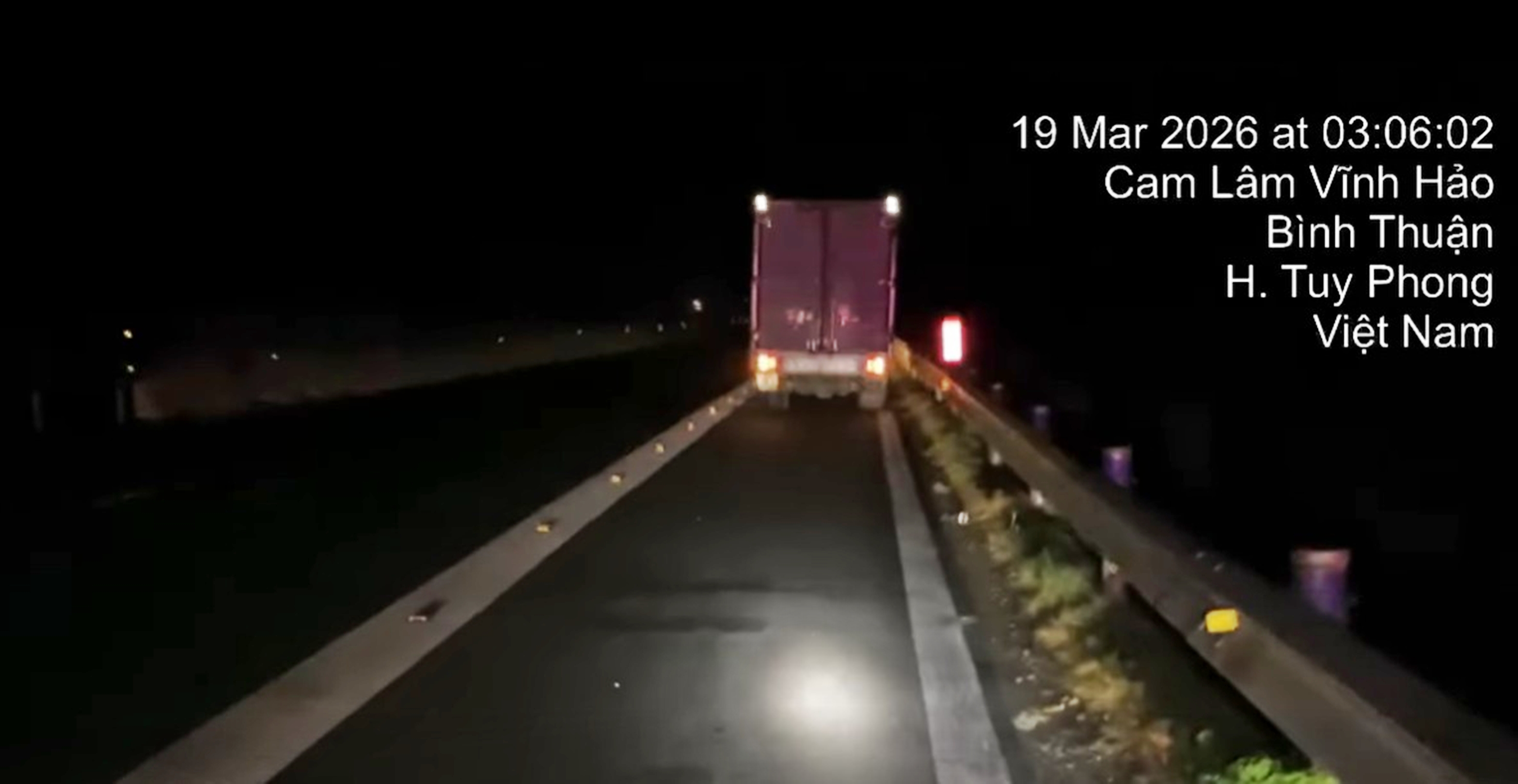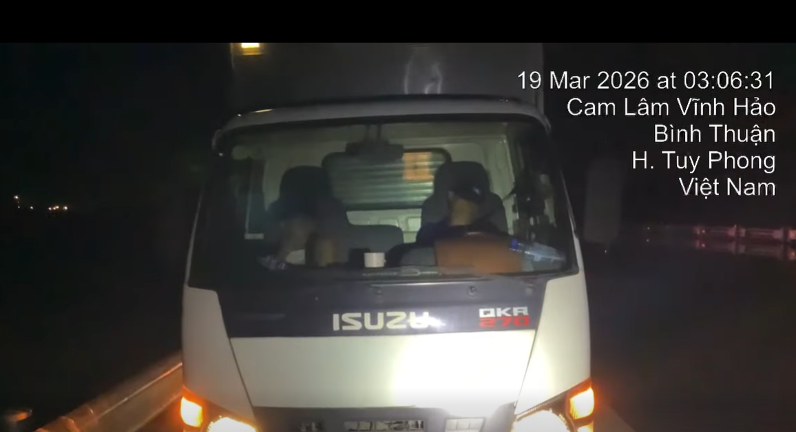Lúc 3 giờ 6 phút ngày 19-3, trên cao tốc Cam Lâm-Vĩnh Hảo, thuộc địa phận xã Vĩnh Hảo, tỉnh Lâm Đồng, lực lượng CSGT phát hiện một xe tải đang đậu tại dải dừng khẩn cấp nên tiến hành ghi hình kiểm tra và thời điểm trên cả tài xế, phụ xe đang ngủ ngon lành trong cabin xe.