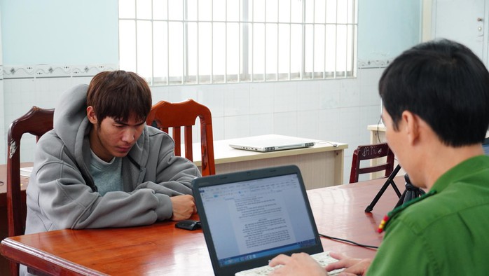 Công an đang lấy lời khai đối tượng Lại Thanh Linh. Ảnh: Công an tỉnh Đồng Tháp